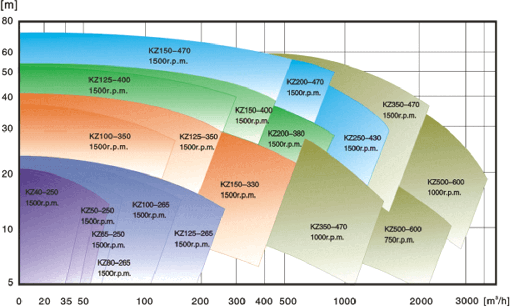Performance Curve of KZ, n=1500rpm(1000rpm, 750rpm)